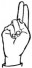На ћирилици написано ЕВГЕНИЈЕ ДУЊИЋ састоји се из 13 слова [?]. Исписано ћириличном једноручном азбуком за глувонеме: